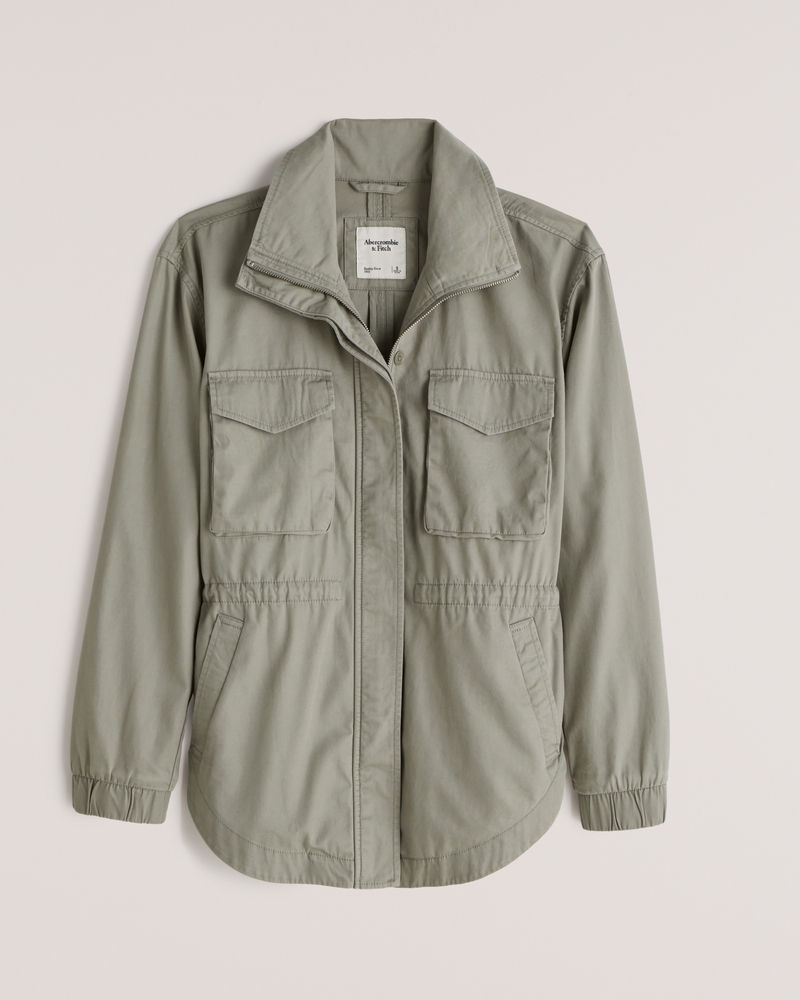 Sleeves can be worn cuffed or uncuffed. Shop Womens Abercrombie Fitch Green Size S Utility Jackets at a discounted price at Poshmark. Clinched waist front patch pockets zipper closure.
